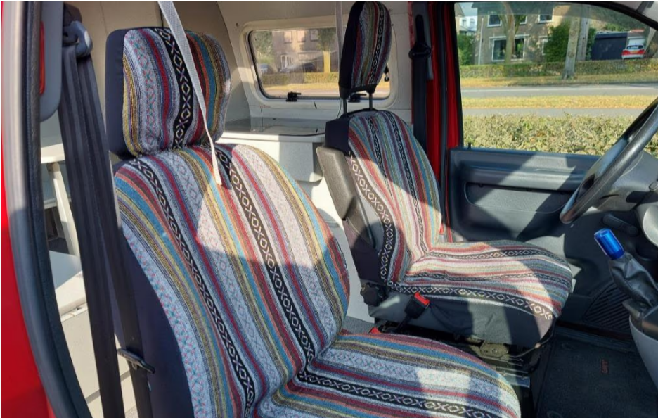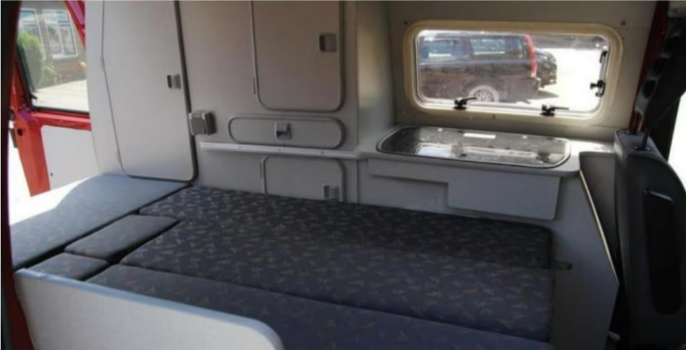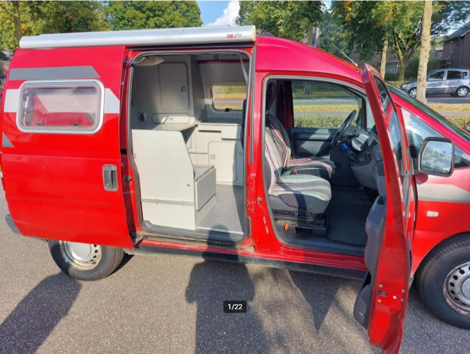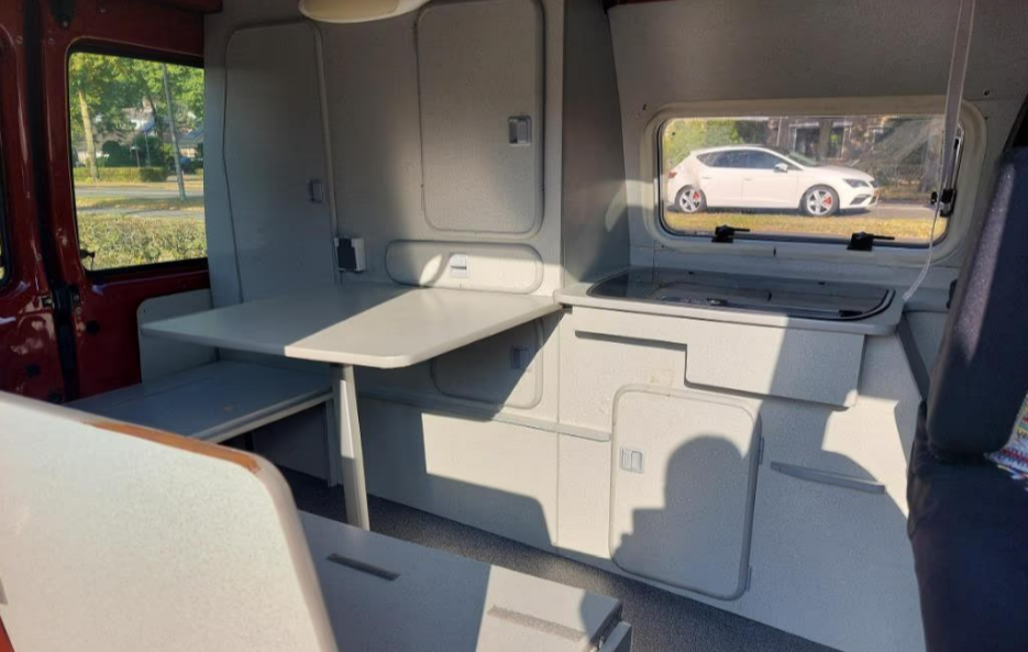 Incluye: cocina americana con cocina a gas de 2 fuegos y grifo de agua. Depósito de agua limpia y sucia + bombona de gas debajo del mueble de cocina. Techo elevable. 1 asiento giratorio. Nevera de 12v. Oscurecedores/parasoles a medida, cortinas, enganche de remolque (útil para portabicicletas o caja portaequipajes, toldo F35 Fiamma). Tamaño de la cama 180x205cm.