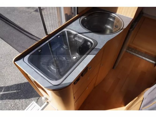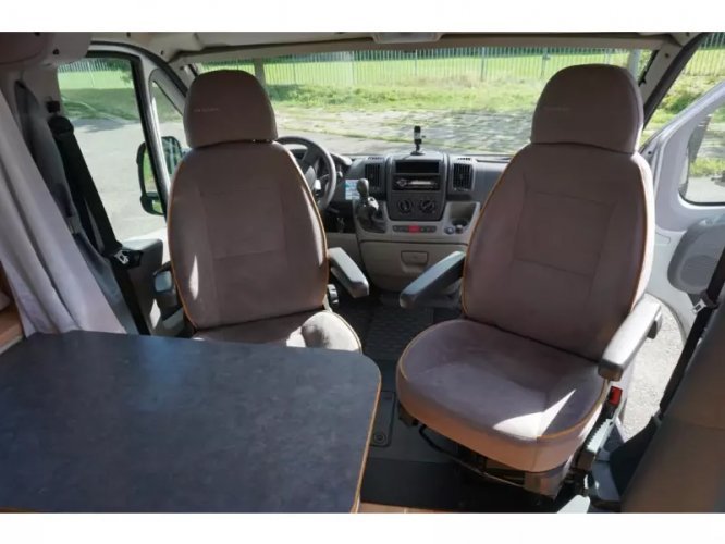 Cerraduras de puerta extra en el exterior, Cerraduras de caja fuerte Heo en el interior, Toldo con pieza lateral, Peldaños eléctricos, NEMO Busbiker para dos bicicletas, Mosquitera en puerta corredera, Cabina con sistema plisado, Panel solar, Control de crucero, Suspensión neumática trasera Goldschmidt, Radio/CD, Porta libros, Iluminación LED, Ventana de techo grande, Alarma de gas, Faldones para barro, Rueda de repuesto,