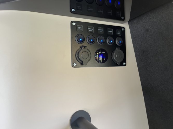 2 baterías conmutadas AGM con cargador inteligente Victron (control a través del teléfono móvil con Bluetooth)