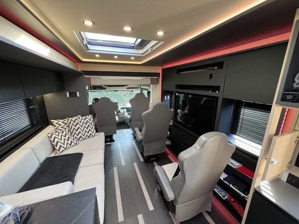 Soportes de elevación 4 toldos de techo (sistema de nivelación automática), sistema de sonido Thule eléctrico Bose de 6 m , puerta de entrada eléctrica, sistema de cámara, pantalla de control Raymarine de 360° , 2 x todas las funciones y pantallas centralizadas , cama elevadora eléctrica, 1,6 m de ancho, mesa plegable el sofá (hecho a medida de la construcción de un yate), cocina con horno, placa de inducción Nevera para vinos Campana extractora Aspiradora central Generador diésel Fisher Panda 8000 (silencioso) Cargador/inversor 2,5 kW 6 baterías de gel de 260 AH Enrutador de Internet Longitud 12 m