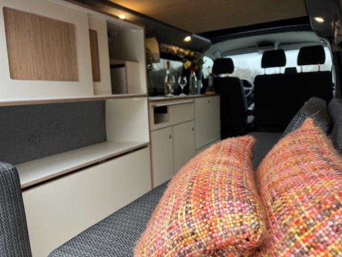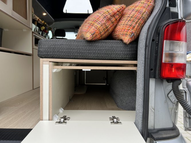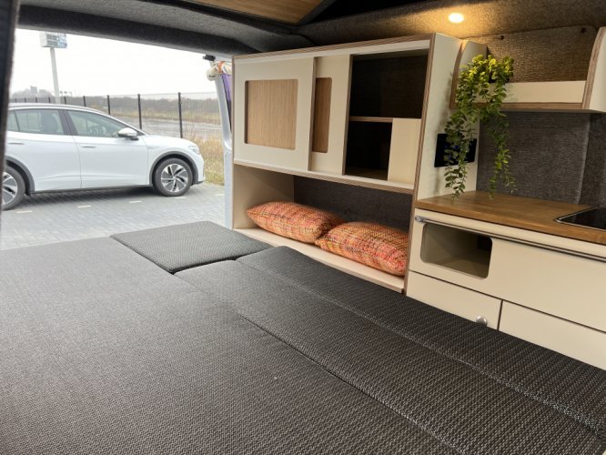 Nuestra autocaravana, basada en la VW T5-6, está disponible en dos tamaños: el L1H1 de 490 cm de largo y el L2H1 de 530 cm de largo. Esta elección ofrece las siguientes ventajas: