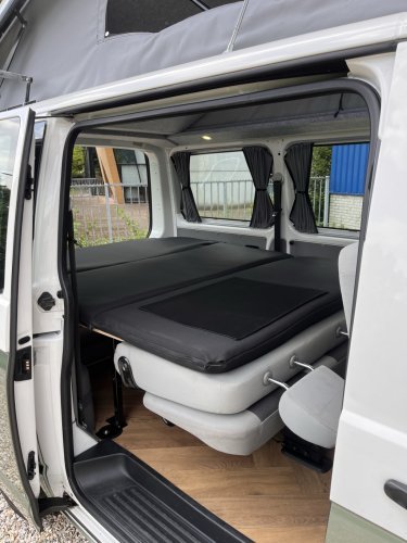 • Techo elevable, que incluye cama con bisagras en el techo elevable y colchón de 2 plazas (115 por 195 cm)