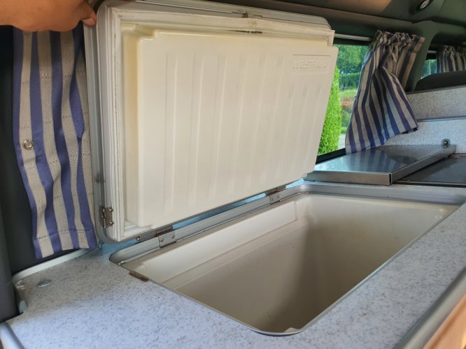 El uso de fibra de vidrio hace que el plástico del techo de esta caravana Westfalia sea resistente al granizo.